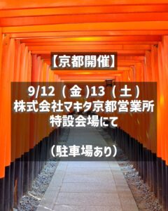 京都では、今週9月12日(金)9月13日(土)の開催ですが、全国で開催されてるのでお時間のあるマキタフリークの方は、是非ともこの機会に行かれてみてはどうでしょうか。