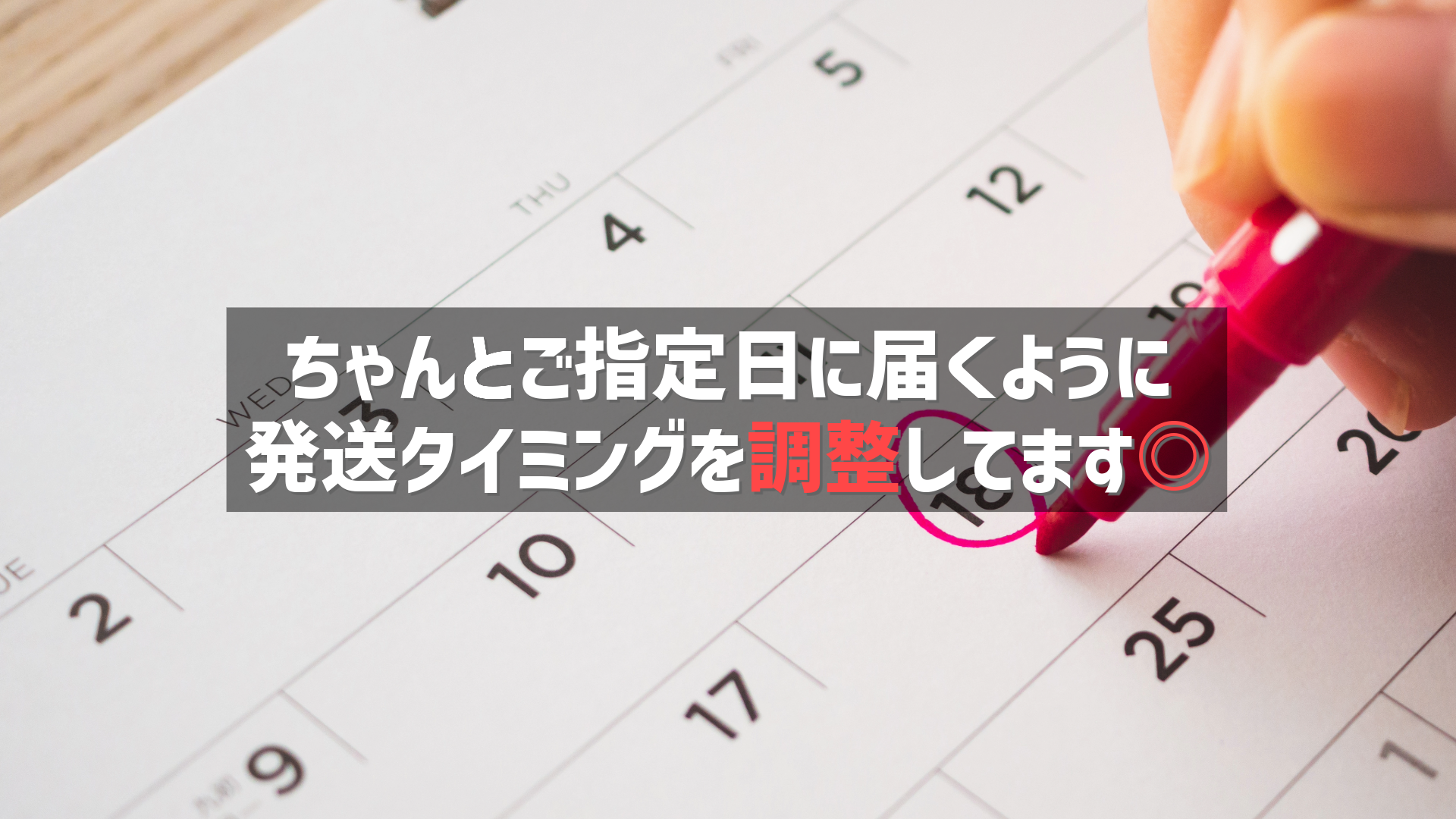 お客様のご指定日に一番ええ塩梅で届くように、発送のタイミングを調整してるんですわ。